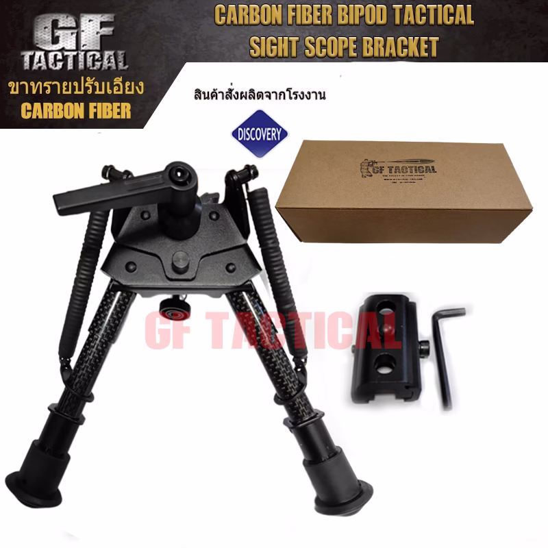 ขาทรายปรับเอียง CARBON FIBER ขาทรายติดปืน ขาทรายลูกกรด ทรง Harris Bipod 6-9 นิ้ว+อแดปเตอร์ใส่ราง GF TACTICAL ผลิตจากโรงงาน DISCOVERY ขาทรายCZ ขาทรายติดปืน CZ457 CZ455 CZ452 10/22